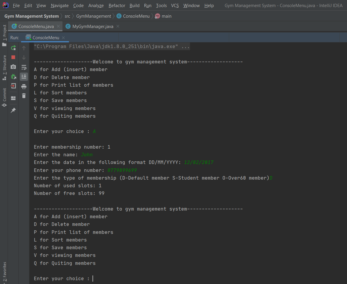 gym management system allows the user to maintain the recordes of their members. While using this system user can add,delete,sort,save,print and view their member's records.